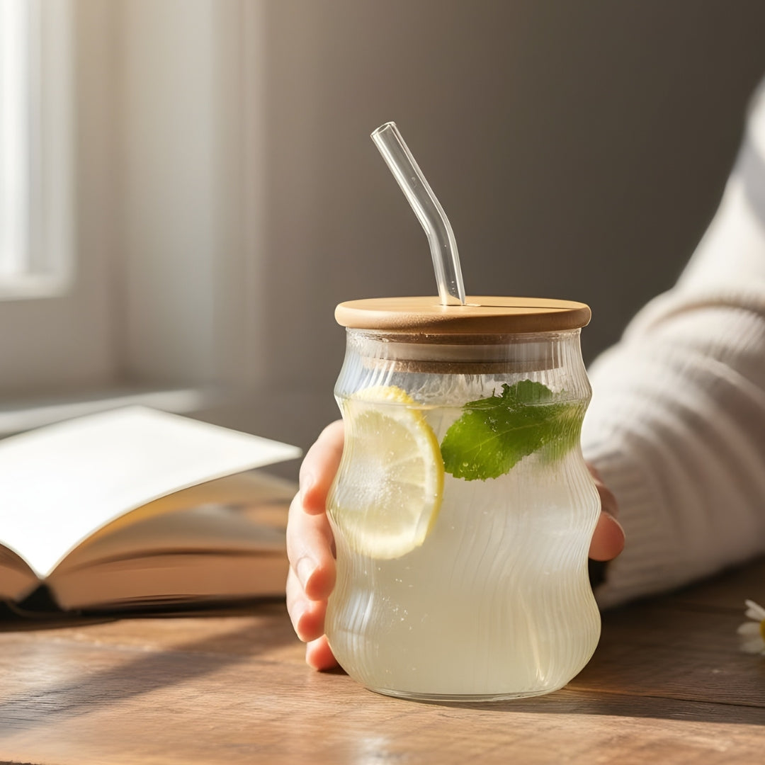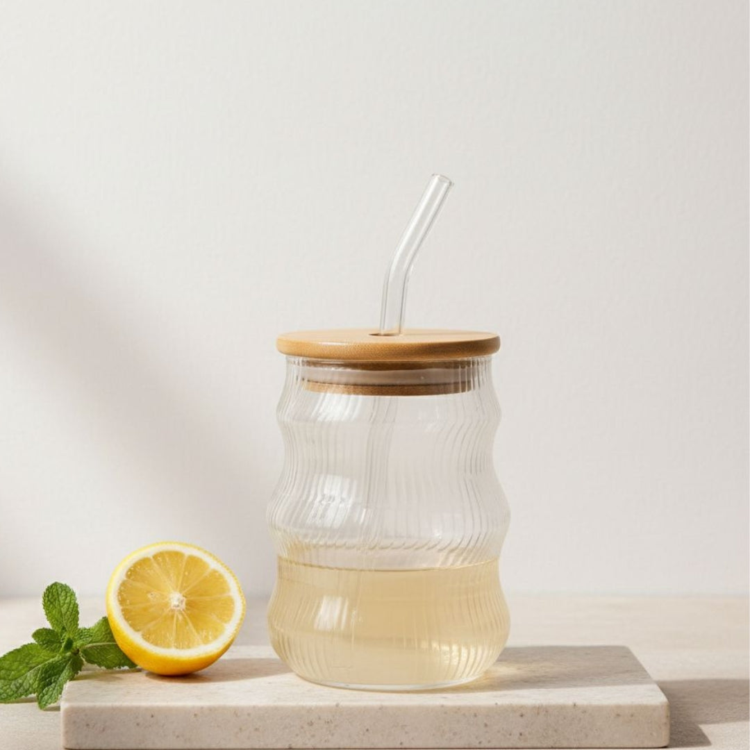 Ribbed Jar with Bamboo Top